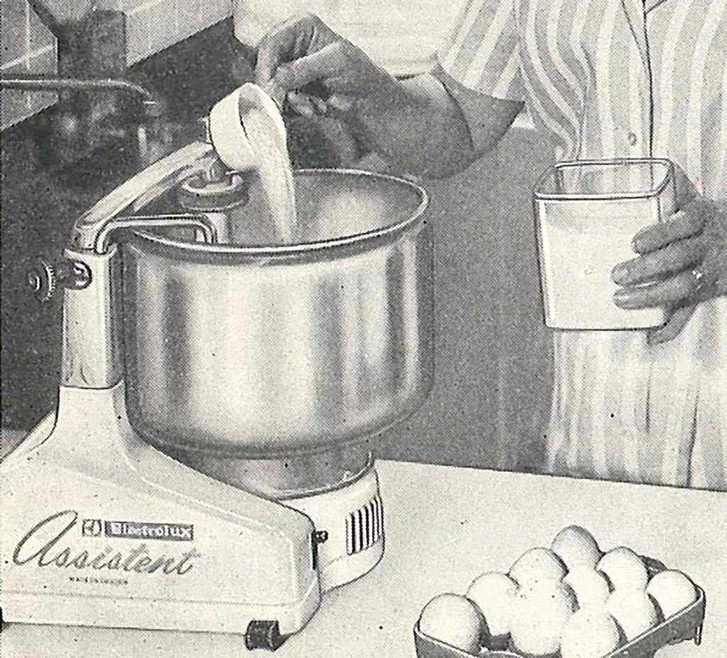 Pendant la Seconde Guerre Mondiale, la nourriture et les matériaux ont été rationnés, ce qui a eu un impact sur l’Assistent. Avec le rationnement des aliments, un livre de cuisine d’urgence spécial a été joint pour aider les consommateurs à utiliser tous les ingrédients de la meilleure façon possible et à ne rien gaspiller. La pénurie de matériaux après la Seconde Guerre Mondiale a eu pour conséquence qu’entre 1945 et 1949, l’appareil avait un délai de livraison de trois ans. Naturellement, c’était dévastateur pour les ventes, mais si vous aviez une forme quelconque de handicap ou une faiblesse de la main et que vous pouviez faire certifier par un médecin qu’un Assistent rendrait la situation plus facile, il était possible d’avoir un robot plus rapidement. Pendant ces années, Electrolux a donc reçu un nombre considérable de notes de médecins de la part de clients qui voulaient leur appareil de cuisine le plus vite possible.
