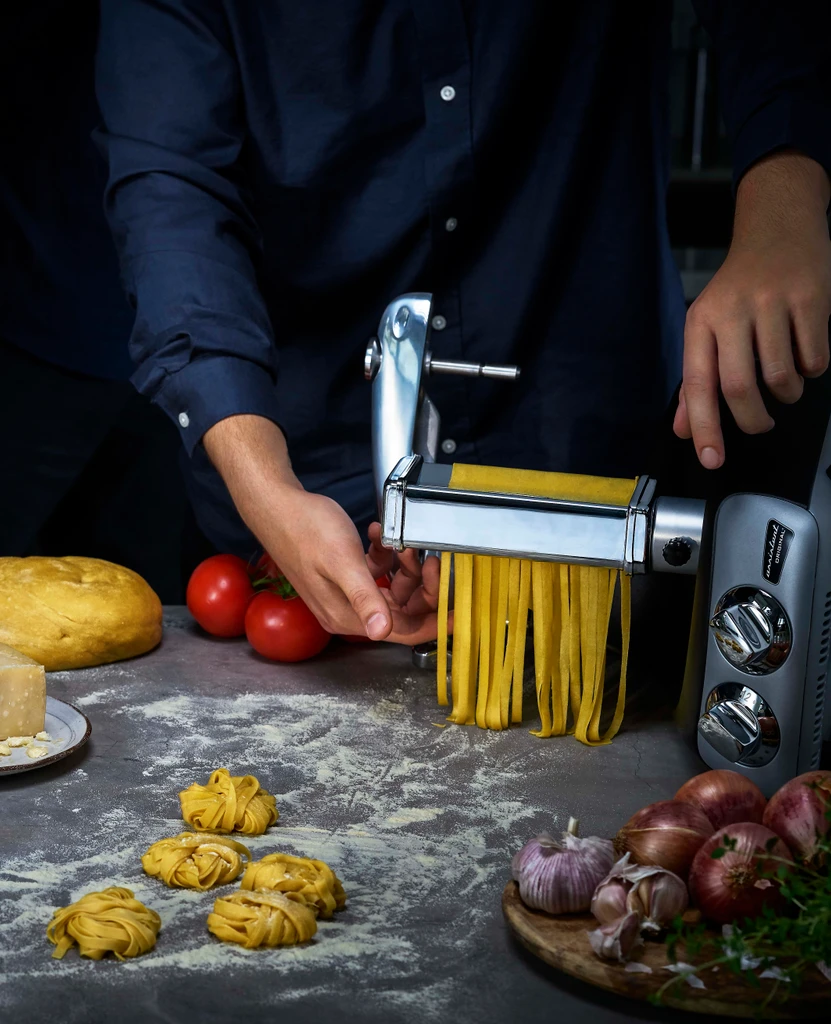 Servir des pâtes faites maison fait toujours bonne impression lors d'un dîner. Le goût et la texture sont une merveilleuse expérience pour le palais - et c'est beaucoup plus facile à faire que vous ne le pensez ! Nos rouleaux à pâtes proviennent de la société italienne Marcato, qui n'a pas moins de 80 ans d'expérience dans la fabrication des machines à pâtes.