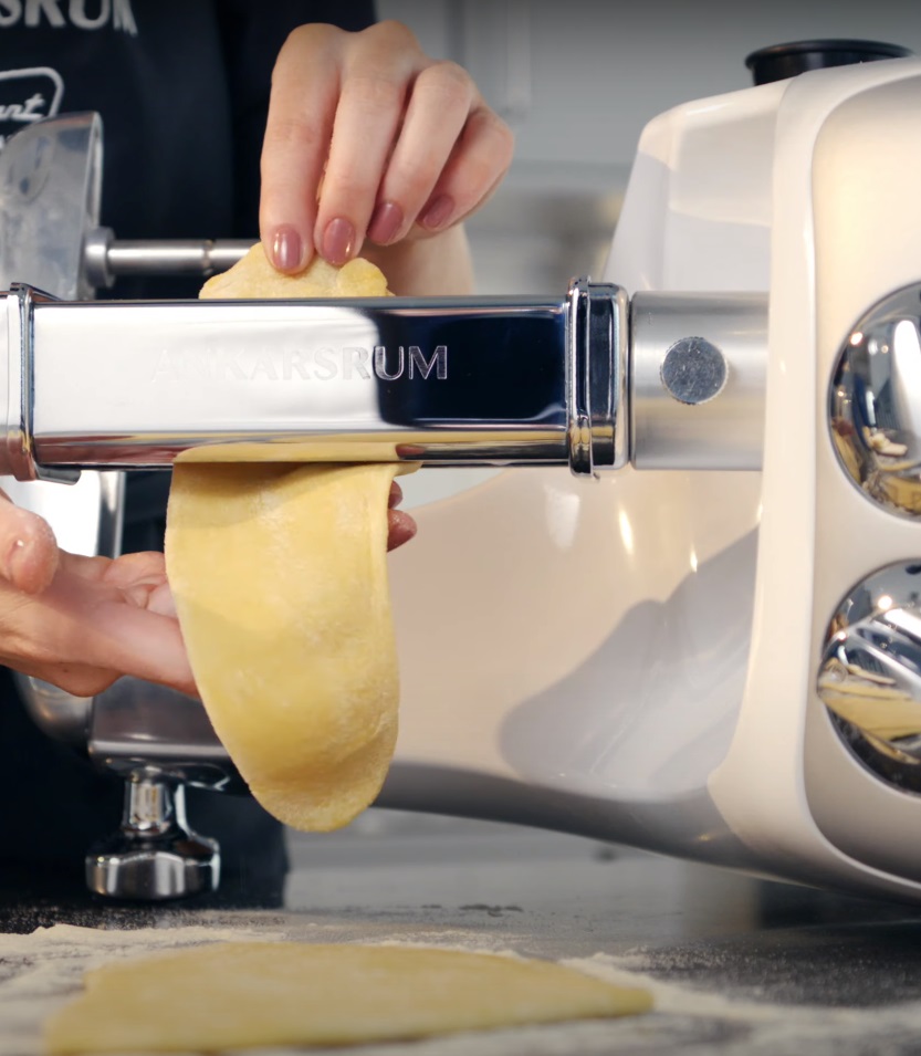 One of the many delicious things you can make with your Ankarsrum Assistent Original. Here you will find both recipe and instructions on how to use your machine when making your own homemade pasta.