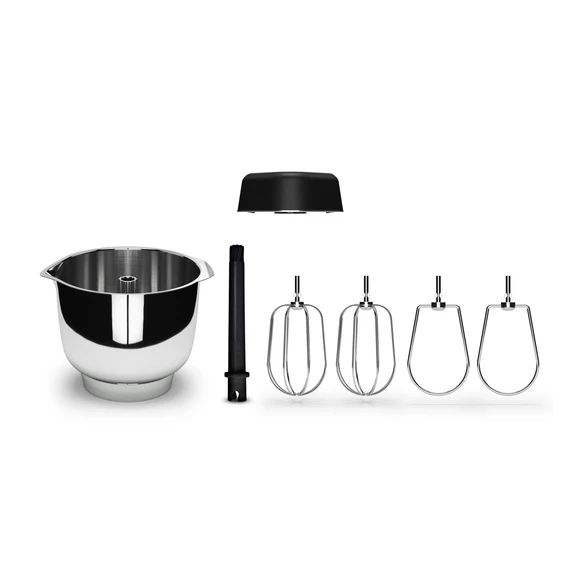 The closed Beater Housing features a solid design with an optimized internal gear ratio, eliminating loose parts or exposed gear wheels that require assembly. Simply push the Balloon Whisks or Cookie Beaters into place and you’re ready to mix.
