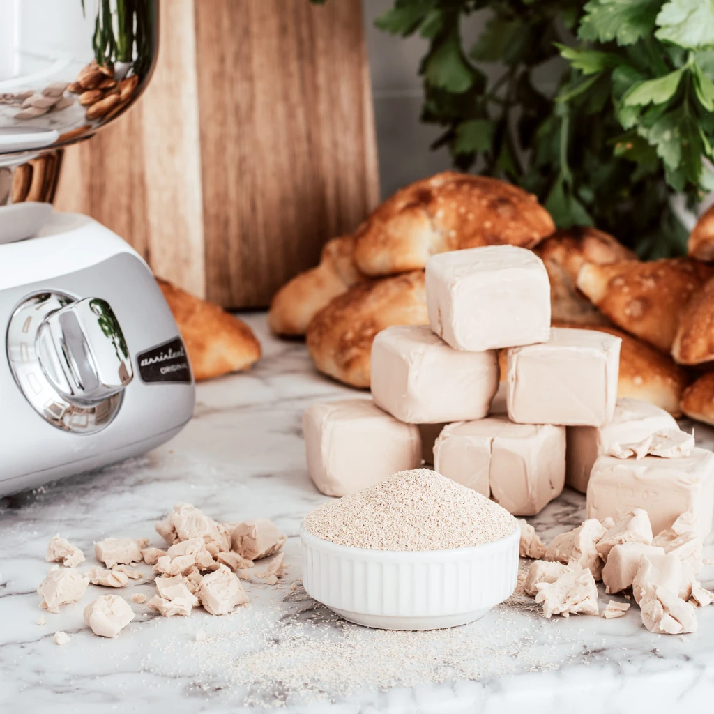 La levure sèche se conserve à température ambiante et contrairement à la levure fraiche, elle se conserve longtemps. Pour les recettes de pain, la levure sèche est d’abord mélangée à de la farine dans le bol avant de reposer une dizaine de minutes.