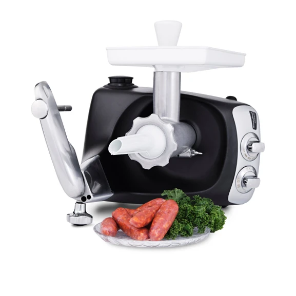 Zusätzlich zum Fleischwolf mit Tablett und Stopfer, haben Sie alles, was Sie brauchen, um Ihre eigene Wurst herzustellen! Drei verschiedene Wurstfüllaufsätze kommen zum Einsatz bei Hot Dogs, Nürnbergern oder Bratwürsten sowie Salsiccia. Selbst Fischbratwurst gelingt!