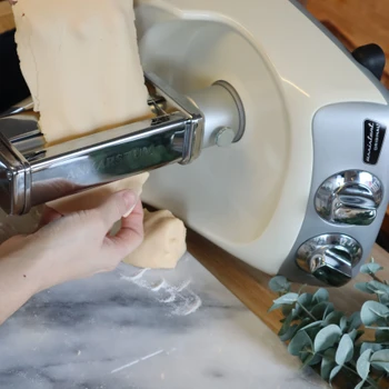 Die Assistent mit dem Pastavorsatz für Lasagne zusammensetzen. Den Teig in vier gleich große Stücke teilen.