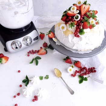 Dæk kagen med flødeskum og pynt med friske jordbær!