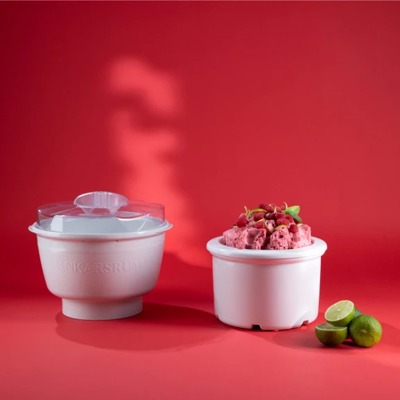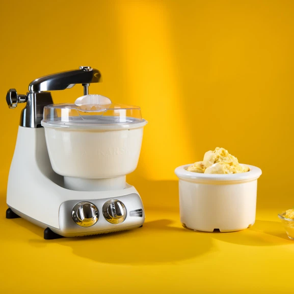 Ahora lanzamos el accesorio que todos estaban esperando: la heladera que hace que tu amasadora Ankarsrum sea aún más completa. Ahora puedes hacer helado casero para que disfrute toda la familia. Con este nuevo accesorio, puedes hacer desde el clásico helado de vainilla o un suave sorbete hasta un agradable y cremoso yogur helado.