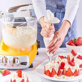 7. Coloca en la amasadora Ankarsrum el bol de plástico y las varillas para montar.