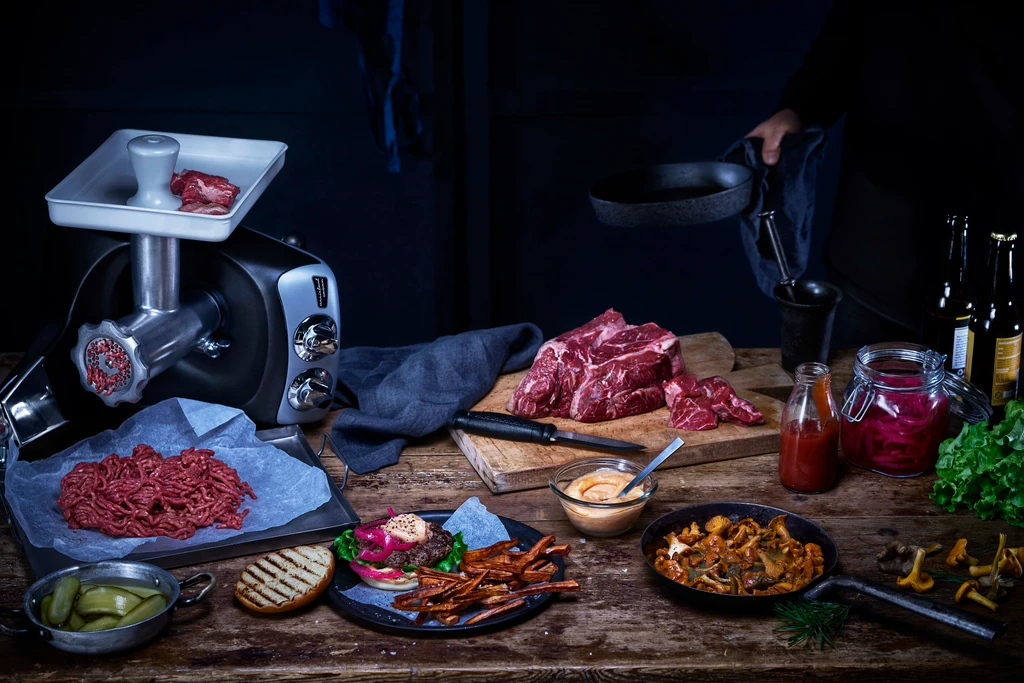 Avoir un hachoir dans la cuisine vous permet de cuisiner comme dans un restaurant. Et cela s'applique quelques soient vos préférences : que vous aimiez la viande, le poisson, la volaille ou que vous soyez végétarien, vous pourrez hacher des pièces de viande, du poisson ou des pois chiches sans difficultés. Essayez de faire des terrines de poisson aux saveurs délicieuses, des falafels, des saucisses avec des épices sélectionnées selon vos goûts ou pourquoi pas des hamburgers avec votre propre viande hachée préparée avec des ingrédients que vous aurez choisi avec soin ? Faites chauffer le grill !