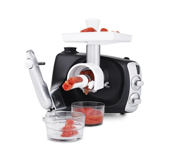 Art No: 920900059Μία κρεατομηχανή στην κουζίνα σημαίνει ότι μπορείτε να ανεβάσετε τη μαγειρική σας σε ένα εντελώς νέο επίπεδο. Και αυτό ισχύει είτε προτιμάτε κρέας, ψάρι είτε είστε χορτοφάγος, γιατί μπορείτε να την χρησιμοποιήσετε για να αλέσετε εξίσου καλά κιμά κρέατος, ψαριού ή από ρεβίθια. Περιέχει τουλάχιστον τρία διαφορετικά κέρατα λουκάνικου, ώστε να μπορείτε να φτιάξετε οτιδήποτε, από χοτ ντογκ και nürnbergers μέχρι bratwürst και salsiccia — ή γιατί όχι, λουκάνικο ψαριού ή ένα φαλάφελ;