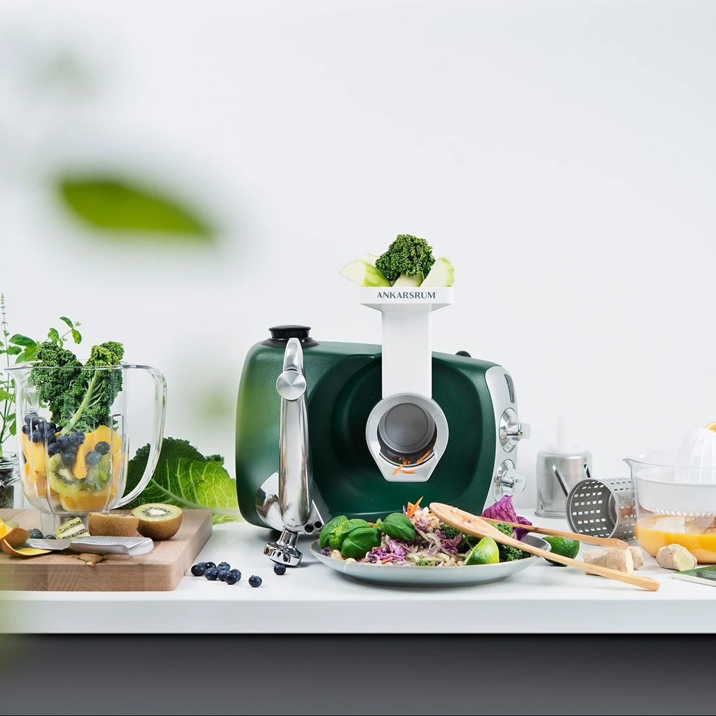 Ad Ankarsrum siamo appassionati di sostenibilità e il nostro kit Go Green è la perfetta incarnazione di questo impegno. Questo innovativo kit combina tre prodotti essenziali per la cucina: frullatore, spremiagrumi e tagliaverdure. Questi prodotti ti permettono di creare deliziosi piatti ecologici a casa tua.