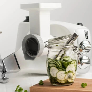 Stel de Assistent in met het vleesmolen opzetstuk en de 4,5 mm schijfplaat.
