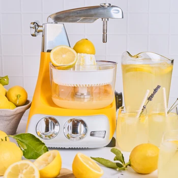 Monteer de Ankarsrum Assistent met de citruspers en pers 3 limoenen uit.