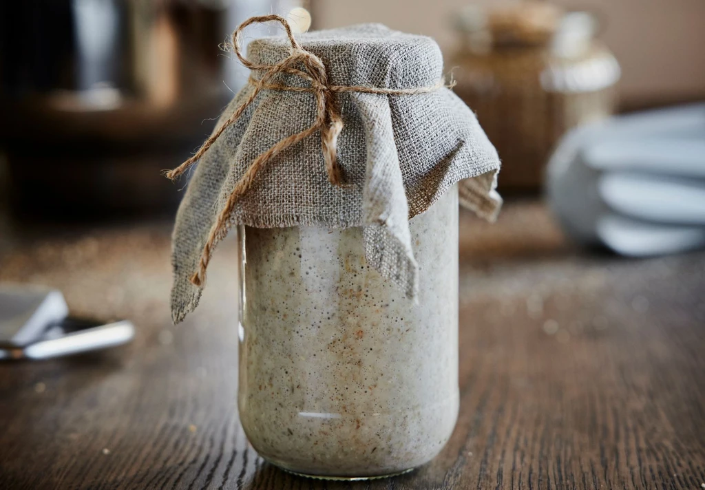 Surdeig oppbevares best i en glasskrukke. Du kan ha krukken stående på benken på kjøkkenet hvis du baker regelmessig, men hvis du ikke skal bake på noen dager anbefaler vi at du setter den i kjøleskapet.