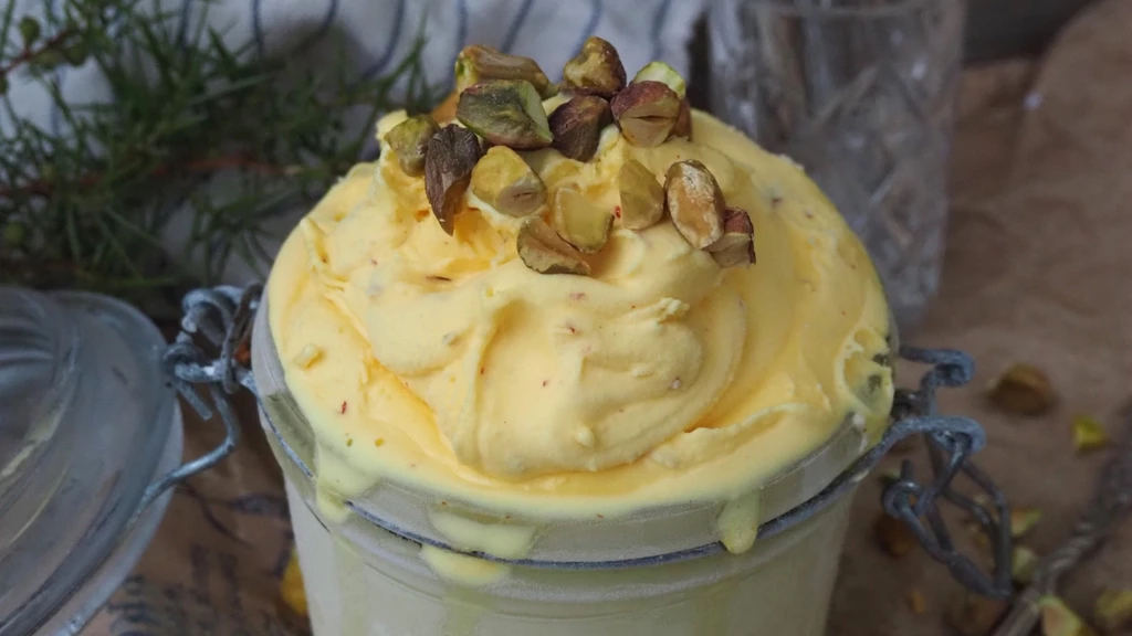 Serve the ice cream with pistachios.