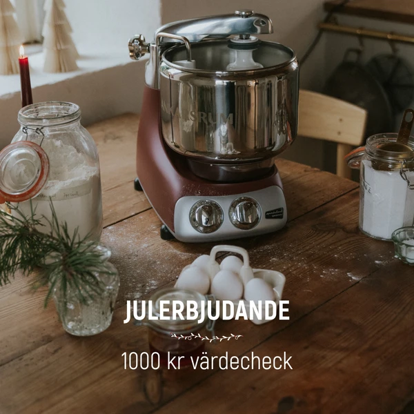 Vår köksmaskin är designad för att hantera en mängd olika kulinariska uppgifter och är ett hjälpsamt verktyg i ditt kök. Oavsett om du bakar bröd, vispar grädde, knådar deg eller blandar kaksmeter, klarar Ankarsrum hushållsassistent av allt med lätthet.