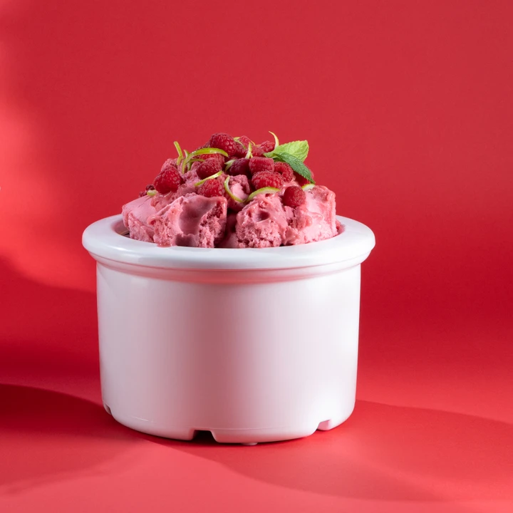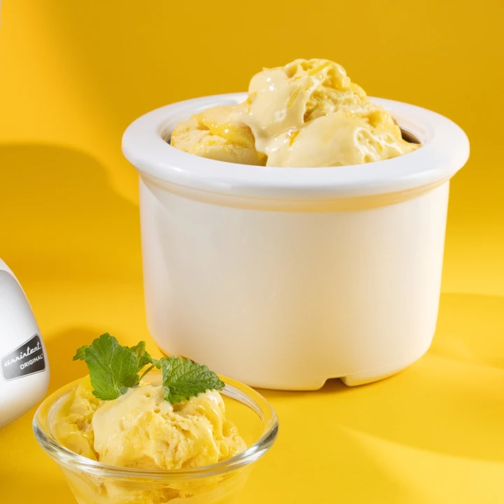 För att din hemmagjorda glass ska behålla sin smak och konsistens är det viktigt att förvara den på rätt sätt. Förvara din glass antingen genom att använda frysskålen och det medföljande locket eller så flyttar du över glassen till en valfri behållare och förvara i frysen. Om du vill äta glassen senare, låt den tina i kylskåpet några minuter för att få en mjukare konsistens.