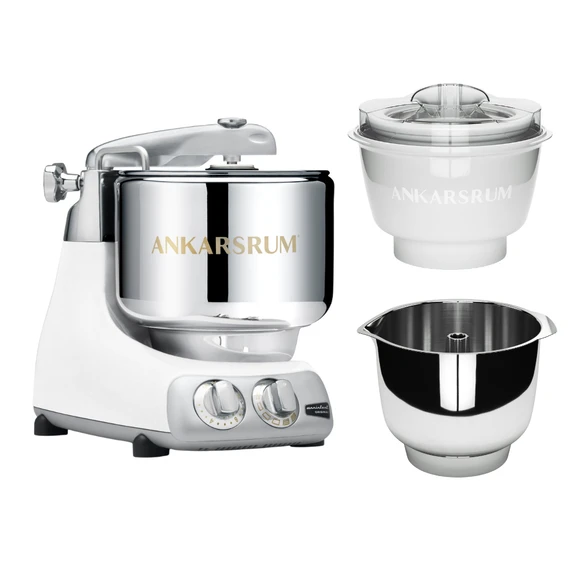 Det kompletta paketerbjudandet för dig som älskar desserter! Inkluderat i paketet är Ankarsrum köksassistent, glassmaskin & vispskål i rostfritt stål.