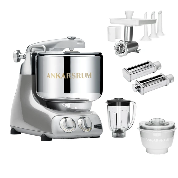 Med det här kompletta paketet från Ankarsrum får du alla tillbehör du behöver: Ankarsrum köksassistent, Glassmaskin, Mixer, Köttkvarn & Pastakit