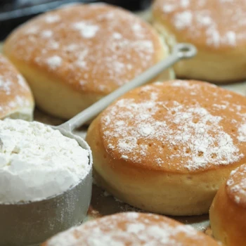 Njut av nygräddade nattjästa vetekakor till frukost! Luftiga och lätta, perfekta för en lugn morgon.