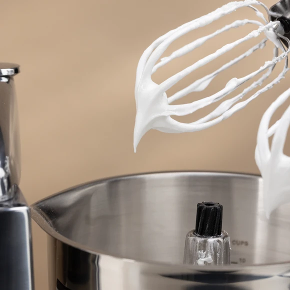 The closed Beater Housing features a solid design with an optimized internal gear ratio, eliminating loose parts or exposed gear wheels that require assembly. Simply push the Balloon Whisks or Cookie Beaters into place and youโre ready to mix.