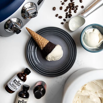 Scrape down the sides of the bowl and pour in the vanilla and almond extract. While mixing at medium-low (2-3 oโclock) add the eggs, one at a time and cream for 1 minute.