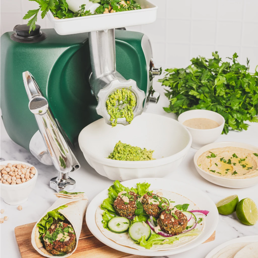 – Meat Grinder Attachment – Grind proteins for meatballs, taco fillings, or stuffed veggies